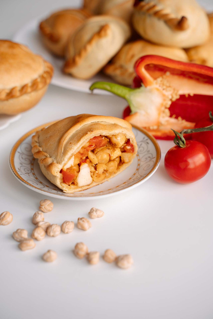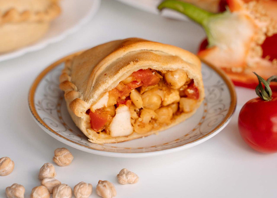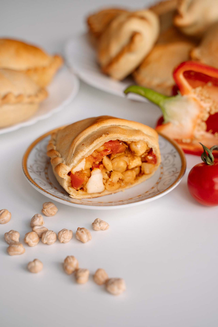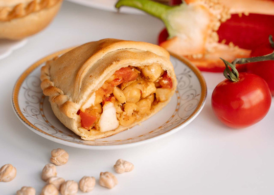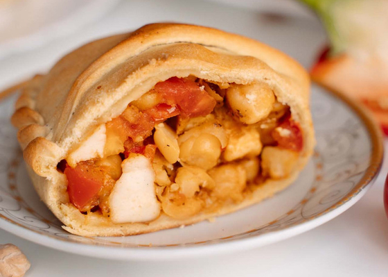 Чудовий самос з нутом та ніжним сирним смаком має приємний аромат томатів та зелені.