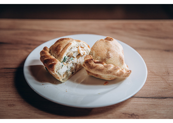 Самос з ніжним дивним сирним смаком, що складається з п'яти видів сиру та домашньої гірчиці.